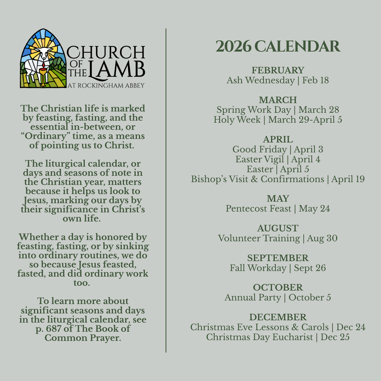 If you are new to Lamb and have not yet attended an Abide class, this is your opportunity to attend in 2026, so mark your calendars and register at www.churchofthelamb.org/2026-abide today! You can direct any questions about the class to rachel@churchofthelamb.org.